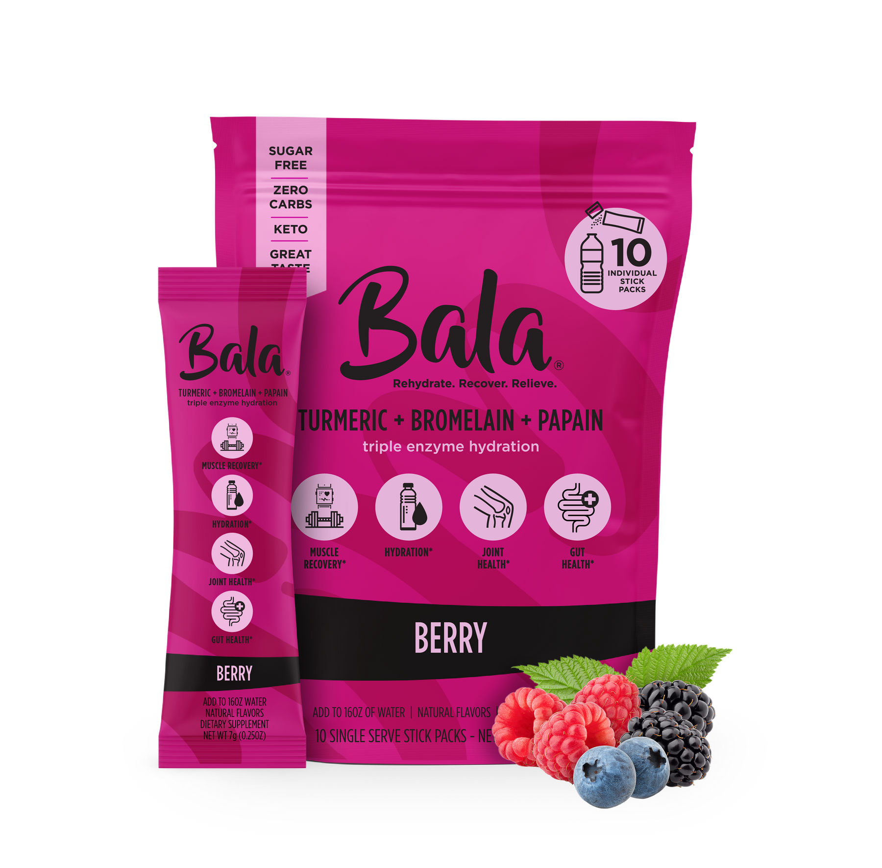 Bala's blend of plant enzymes, electrolytes and amino acids enhances hydration, improves natural energy levels, and increases endurance throughout and after your workout.