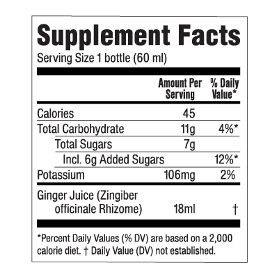 - DIETARY SUPPLEMENT INGREDIENTS: Ginger Juice (Zingiber officinale Rhizome).