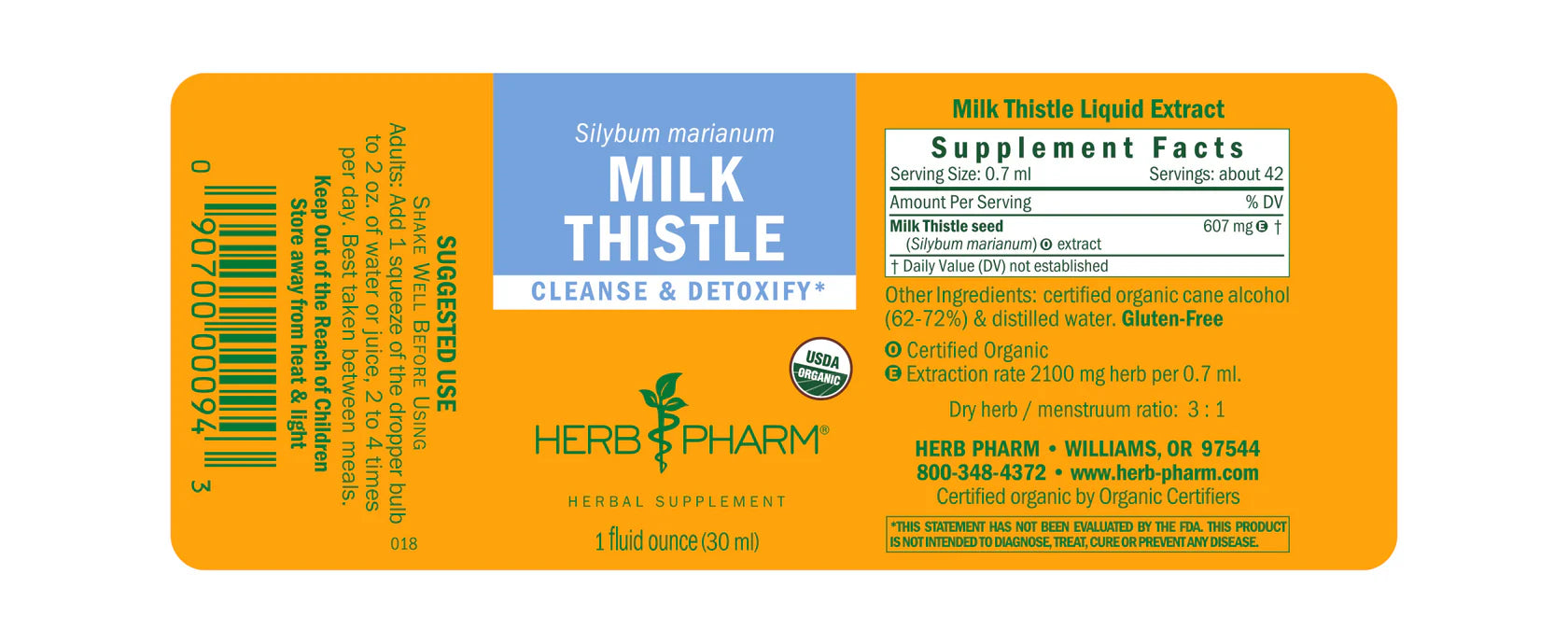 We prepare our Milk Thistle from the dried whole seed of Certified Organic Silybum marianum plants. Our double-extraction process creates a more concentrated extract which contains the broad-spectrum of Milk Thistle's silymarin flavonoids (silybin, silydianin & silychristin).