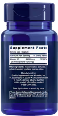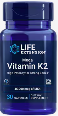 Vitamin K (specifically vitamin K2) encourages the cellular activity of osteoblasts—specialized cells that regulate the mineralization of your bone matrix, the lattice-like support structure that bone is built upon. This helps maintain healthy bone density. And clinical studies show that 45,000 mcg of vitamin K2 as menaquinone-4 is especially effective.
