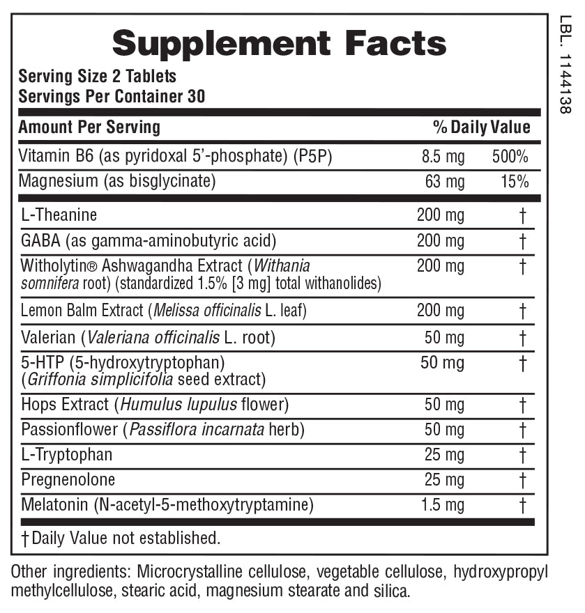- Vitamin B6 to support production of melatonin, GABA & tryptophan*These statements have not been evaluated by the Food and Drug Administration. This product is not intended to diagnose, treat, cure or prevent any disease.