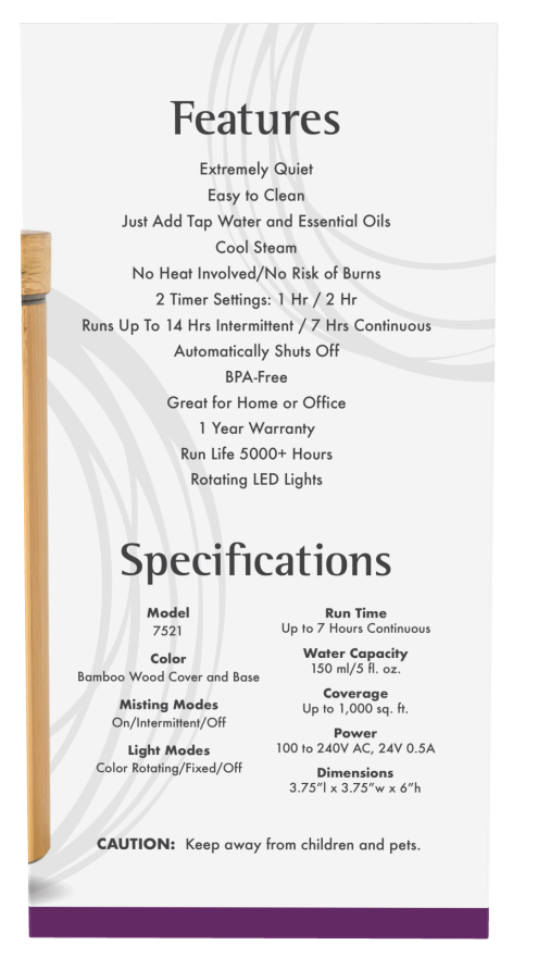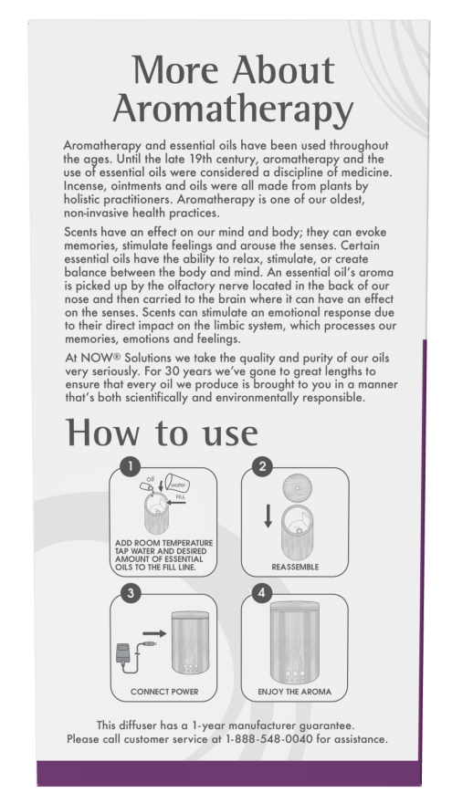 NOW® Solutions Real Bamboo Ultrasonic Oil Diffuser unites aromatherapy with modern scientific innovation to create an essential oil diffuser that's the perfect complement to your home or office. This attractive diffuser is BPA-free and utilizes high-frequency ultrasonic electrical vibrations to create an ultra-fine mist. This diffusion method doesn't utilize heat, which maintains essential oil integrity and holistic properties.