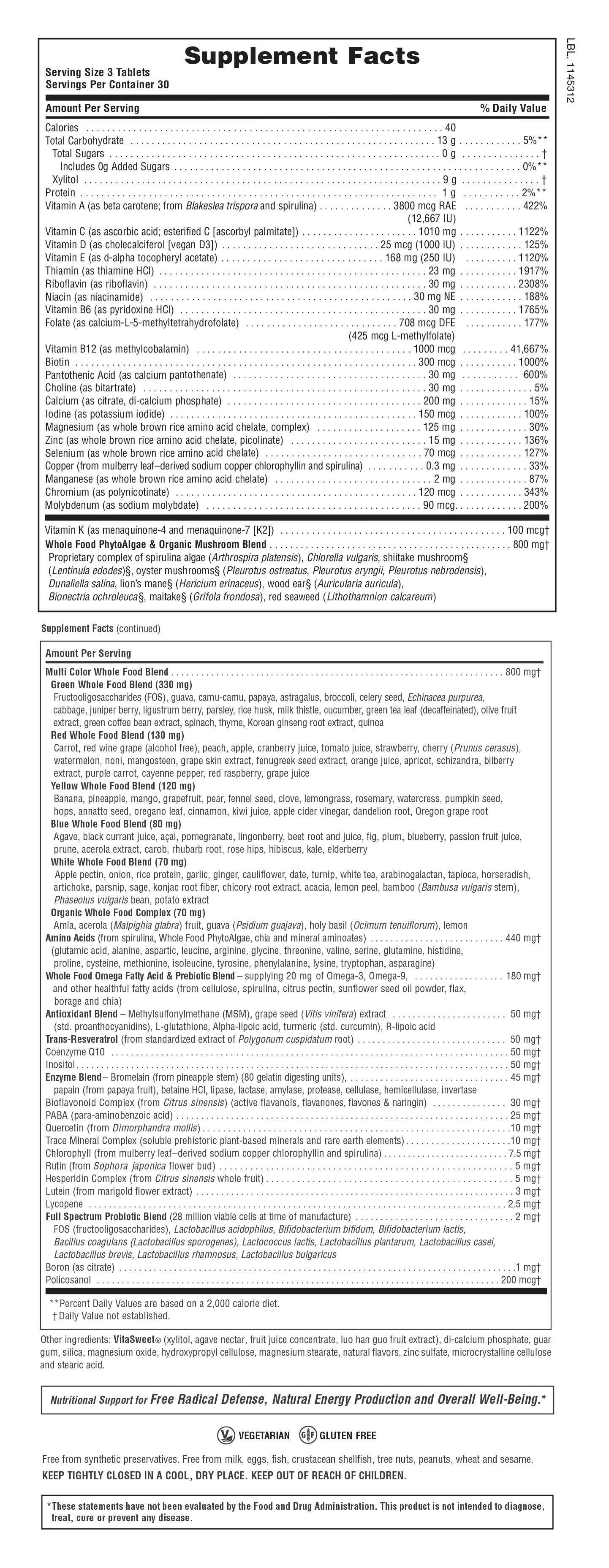 - Whole-Food Power: Nutrients sourced from over 120 organic fruits and vegetables across the color spectrum.