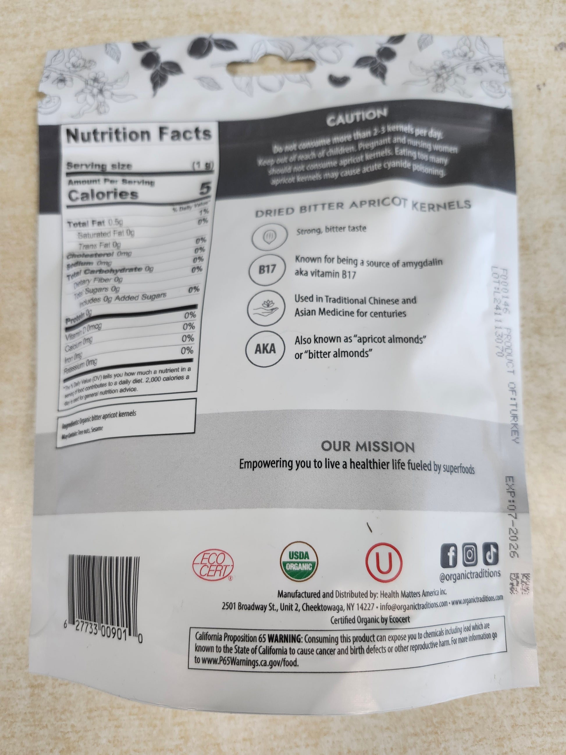 Organic Traditions Dried Bitter Apricot Kernels 8oz