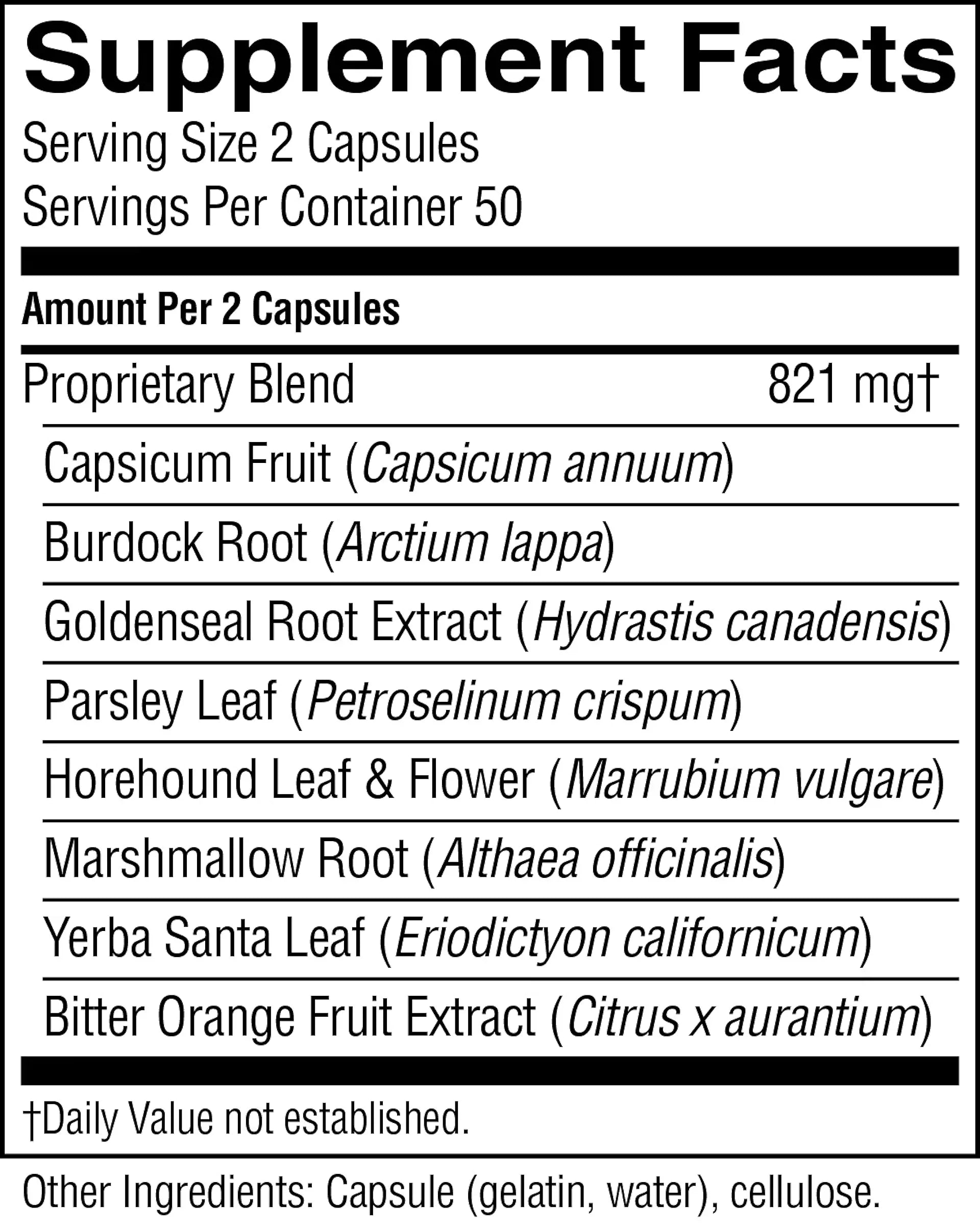 Sinus cleansing and tissue-protection from potent herbs including burdock, goldenseal, marshmallow and yerba santa.
