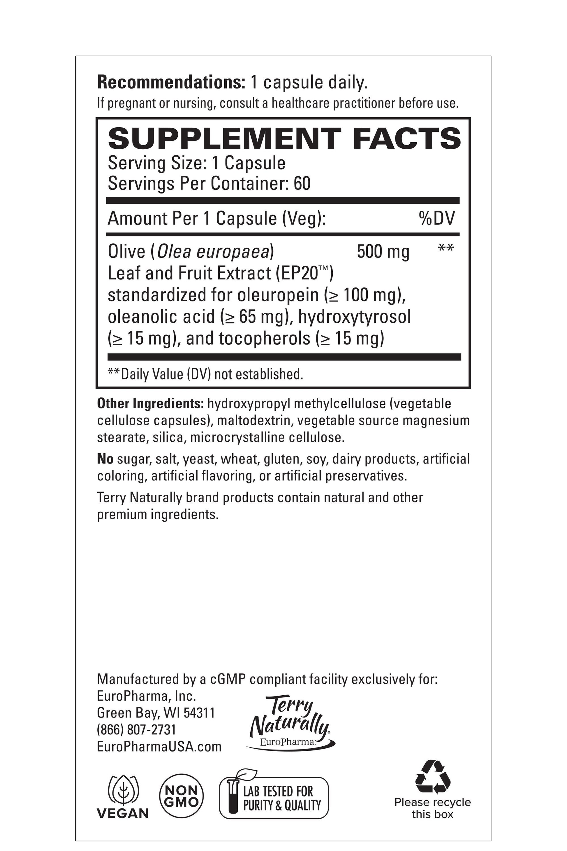 Terry Naturally Olive Extract EP20™ (60 Caps)
